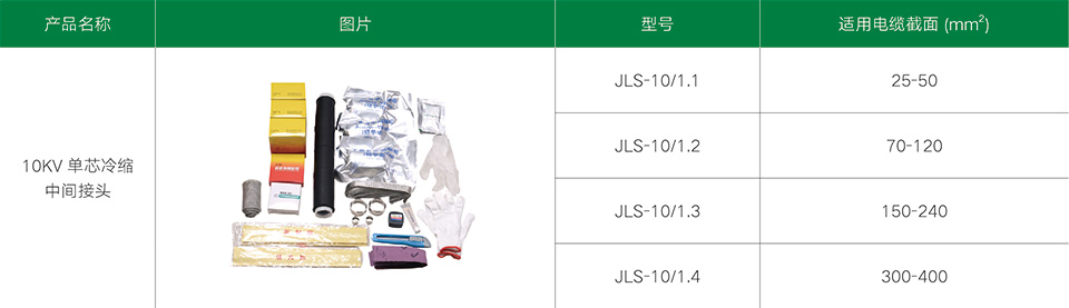10KV單芯冷縮中間接頭適用于3.6/6、6/10、8.7/10、8.7/15kV單芯聚乙烯和交聯(lián)聚乙烯電力電纜。采用液態(tài)硅橡膠制造,集防水、應(yīng)力控制、屏蔽、絕緣于一體。具有良好的電氣性能和機械性能,能在各種惡劣的環(huán)境條件下長期使用。具有重量輕、安裝方便等優(yōu)點。廣泛地應(yīng)用于電力、石油、化工、冶金、鐵路、港口和建筑等各個領(lǐng)域。