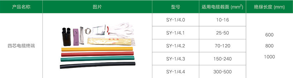 1KV熱縮電力電纜終端頭、中間接頭系列產(chǎn)品,集防水、應(yīng)力控制、絕緣于一體。具有良好的電氣性能和機(jī)械性能,能在各種惡劣的環(huán)境條件下長期使用。具有重量輕、安裝方便等優(yōu)點(diǎn)。廣泛地應(yīng)用電力、石油化工、治金、鐵路港口和建筑領(lǐng)域。
