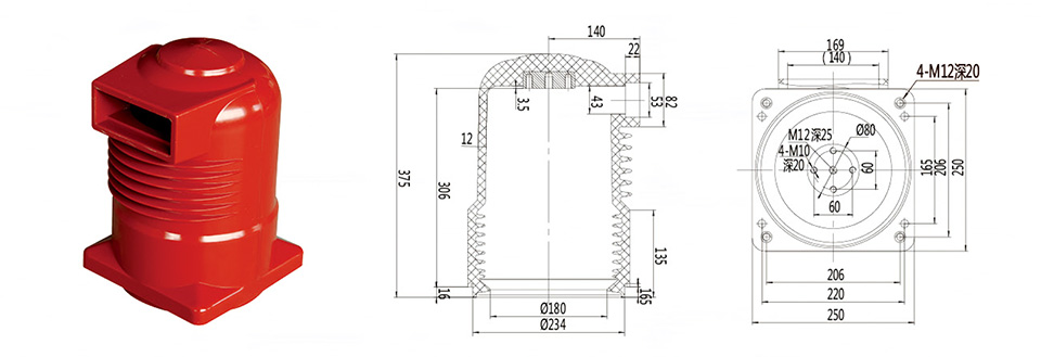 觸頭盒為環(huán)氧樹脂APG工藝壓力凝膠成型結構,用于各種手車式開關柜,起絕緣隔離和聯(lián)接過渡作用。