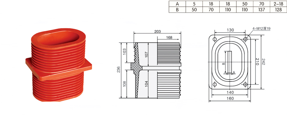 Home > Products > 12KV Bushing > TG3-10Q/130x210 wall bushing of central cabinet