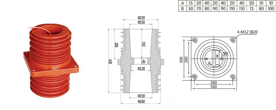 TG3-35Q/260 * 260 * 420 middle cabinet wall bushing