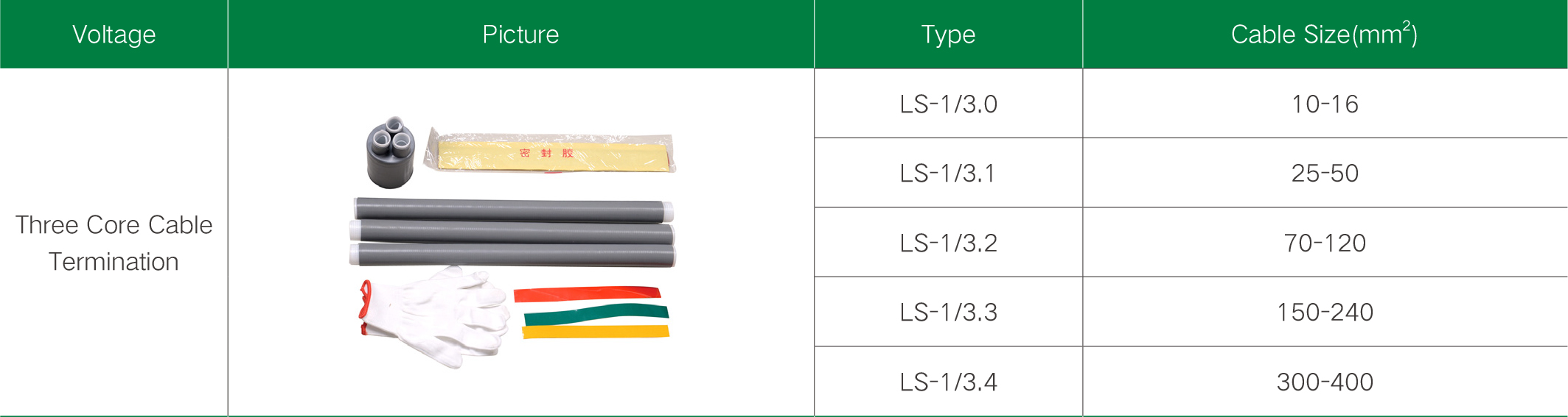 1kV cold shrinkable terminal series products, suitable for 0.6/1kV single-core, two-core, three-core, four-core, five-core polyvinyl chloride, cross-linked polyethylene, rubber and plastic power cables, with good electrical and mechanical properties, can be used for a long time under various harsh environmental conditions. It has the advantages of light weight and easy installation. It is widely used in electric power, petroleum, chemical industry, metallurgy, railway port and construction and other fields.