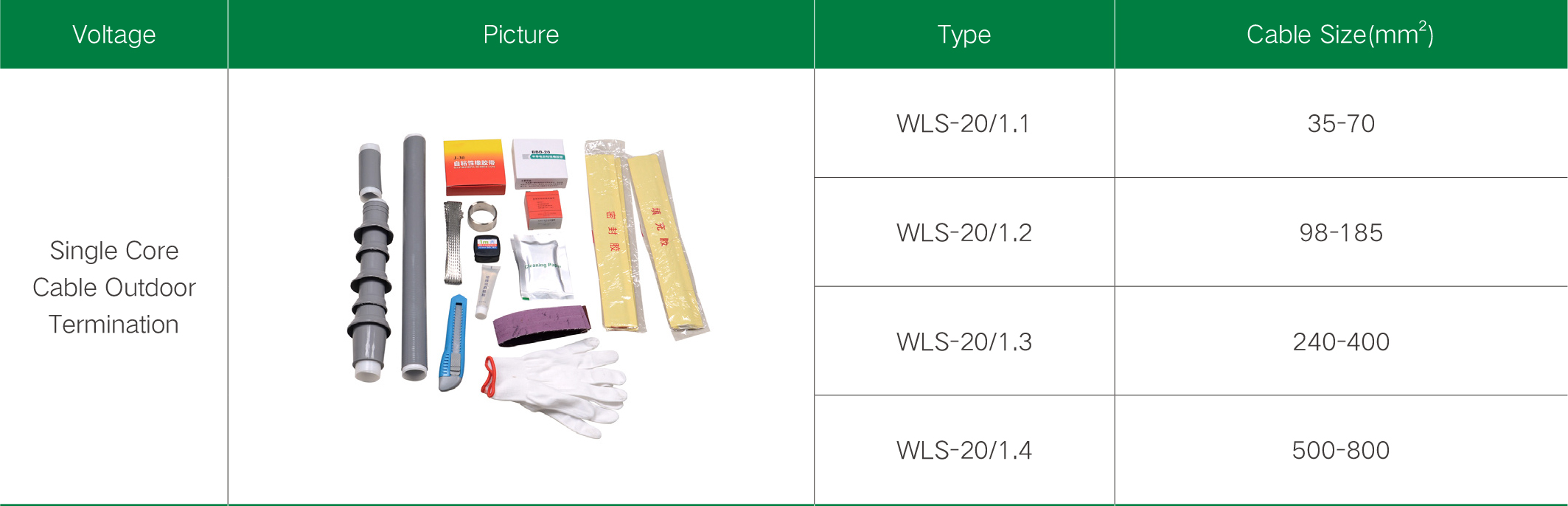20kV single core cold shrinkable cable accessories series, suitable for 12/20, 18/24kVSingle core polyethylene and cross-linked polyethylene power cables. Cold shrinkable cable accessories are made of imported liquid silicone rubber materials, which not only have very good electrical properties, but also have excellent physical characteristics such as water repellency, high elasticity, long service life and constant shrinkage pressure. Using cold shrinkable cable accessories, no need for open flame and special tools, just gently extract the plastic support strip, can automatically shrink and reset, installation is very convenient for work. It has good electrical and mechanical properties and can be used for a long time under various harsh environmental conditions. It has the advantages of light weight and easy installation. It is widely used in electric power, petroleum, chemical industry, metallurgy, railway, port and construction fields.