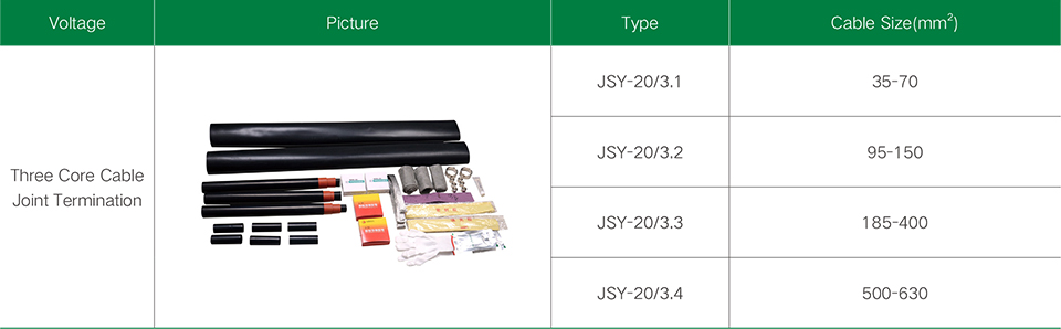 20KV three-core heat shrinkable cable intermediate joint is a kind of connection and insulation protection equipment for high-voltage (2 0 kV) three-core power cable. It is commonly used to connect two segments of three-core cable and provides reliable cable connection and insulation performance.