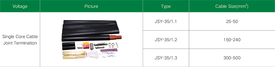 35KV single-core heat shrinkable cable intermediate joint is a kind of cable connection and insulation protection equipment used in high voltage (35 kV) power distribution system. It is mainly used in the middle part of single-core power cables to connect two cable segments and provide reliable electrical insulation properties.