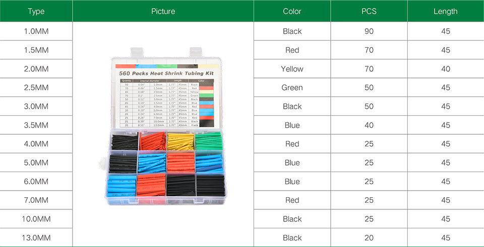 Home > Products > Household heat shrink tubing set > Heat shrink tube set 560PCS (boxed)