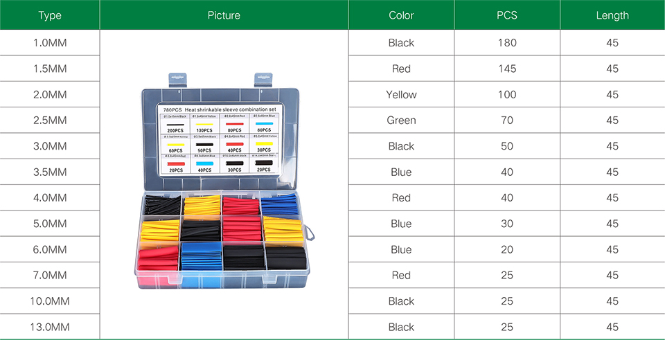 Home > Products > Household heat shrink tubing set > Heat shrink tube set 780PCS (boxed)
